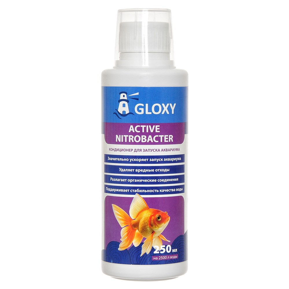 Gloxy Active Nitrobacter — кондиционер для запуска аквариума, разработанный во Франции. Подходит для пресного и морского аквариумов, предотвращает заболевания рыб.