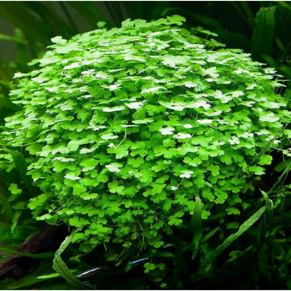 - Применение: благодаря способности выпускать длинные свисающие побеги, гидрокотилу часто выбирают для озеленения камней или создании имитации древесных крон.